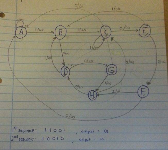 Three 1s detected ● note that each state has 2 output arrows ● two bits needed to encode state for sequence detector sequence of inputs, outputs.