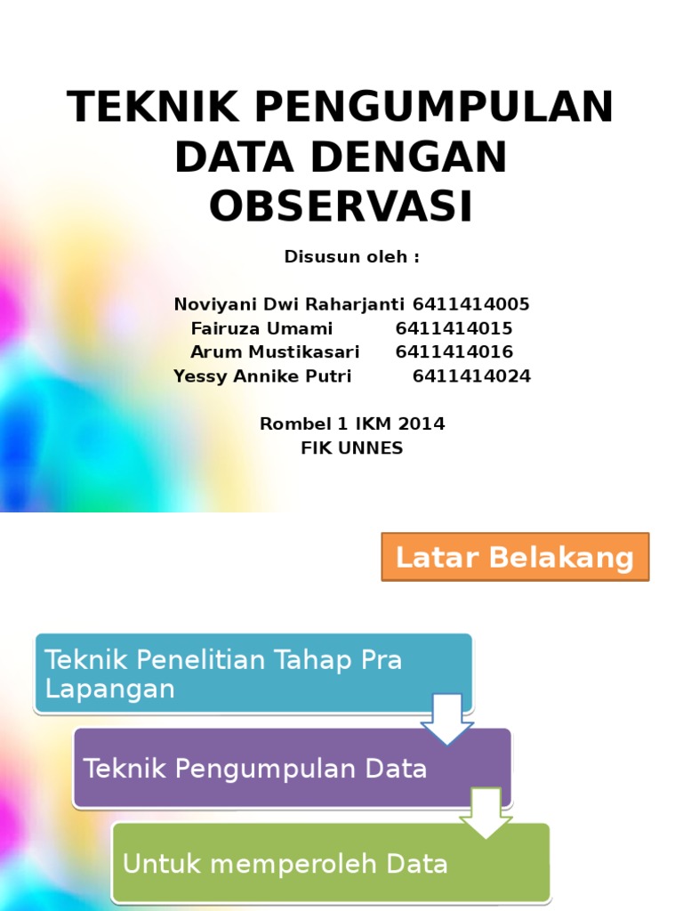 Kaedah pengumpulan data pemerhatian from image.slidesharecdn.com Pengumpulan data dalam penelitian tentunya harus dilakukan secara ilmiah dan sistematis. Kaedah pengumpulan data ini mempunyai kekuatan tersendiri. Untuk mendapatkan suatu data pada penelitian, peneliti harus mengetahui metode metode kuantitatif : Pengumpulan data, dapat dimaknai juga sebagai kegiatan peneliti dalam upaya mengumpulkan sejumlah data lapangan yang diperlukan untuk menjawab pertanyaan penelitian (untuk penelitian kualitatif), atau menguji hipotesis (untuk penelitian kuantitatif). Objektivitas itu diperoleh antara lain melalui penggunaan instrumen yang telãh diuji validitas dan reliabilitasnya. Tujuan dari langkah pengumpulan data dan teknik pengumpulan data ini adalah demi mendapatkan data yang valid. Contoh dari data kuantitatif adalah harga smartphone, berat badan dan tinggi badan, jumlah pembeli, dan sebagainya. Teknik pengumpulan data merupakan suatu cara yang digunakan oleh peneliti untuk mengumpulkan data terkait permasalahan penelitian yang diambilnya.